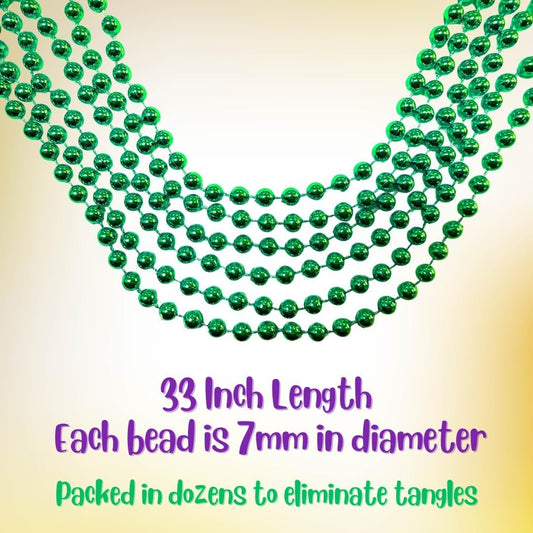 THE MARDI GRAS KREWE Green Mardi Gras Beads - 33 Inch, 120 Pieces