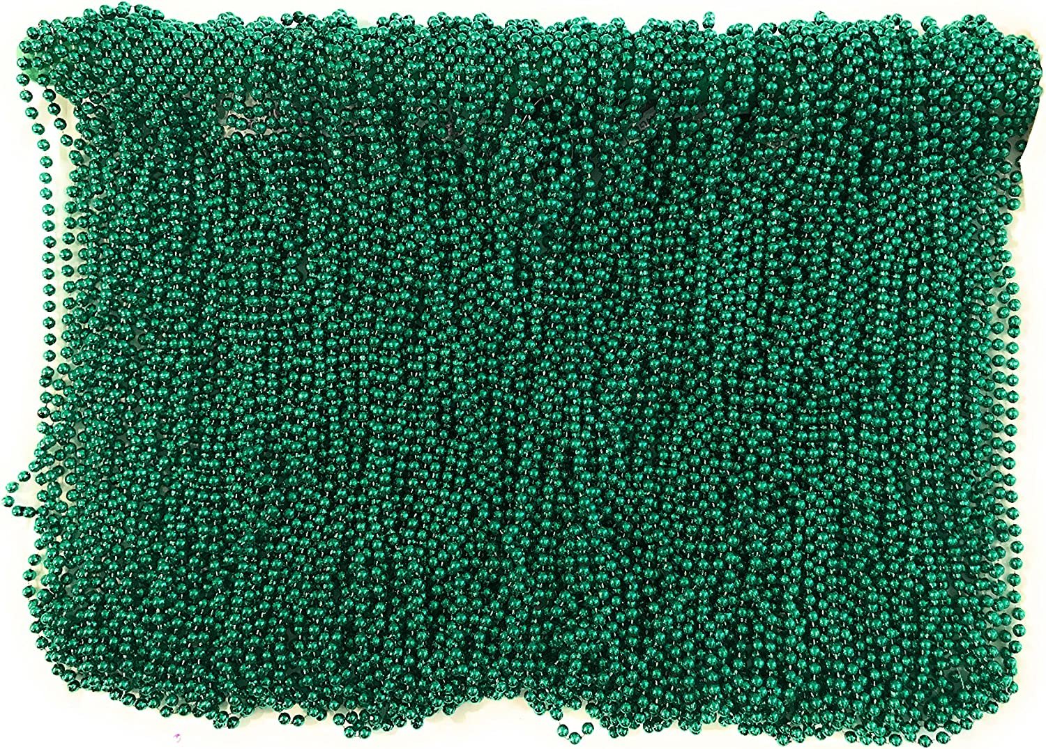 Mardi Gras Beads 33 inch 7mm, 10 Dozen, 120 Pieces (Green White Pearl)