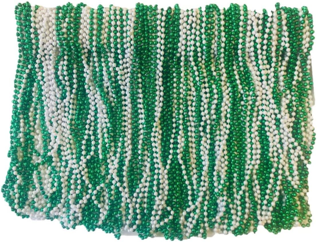 Mardi Gras Beads 33 inch 7mm, 10 Dozen, 120 Pieces (Green White Pearl)