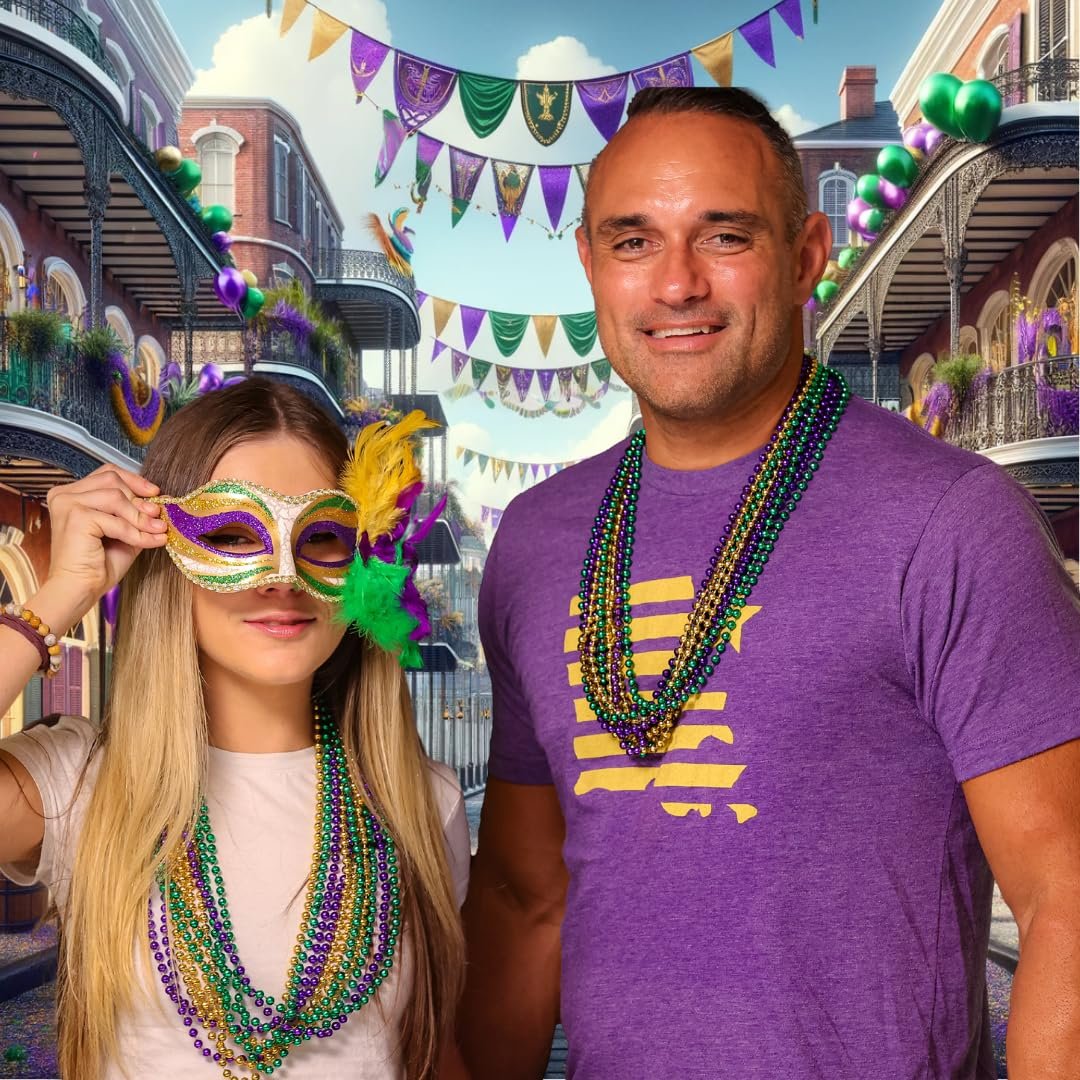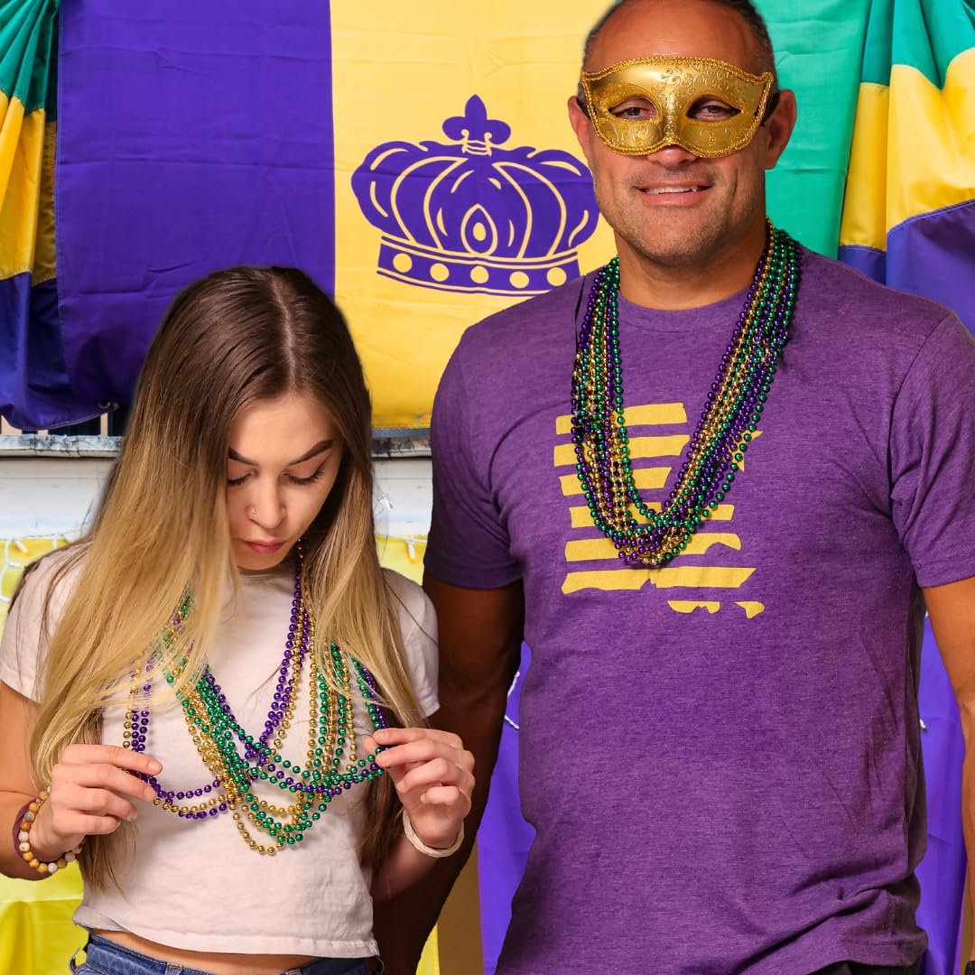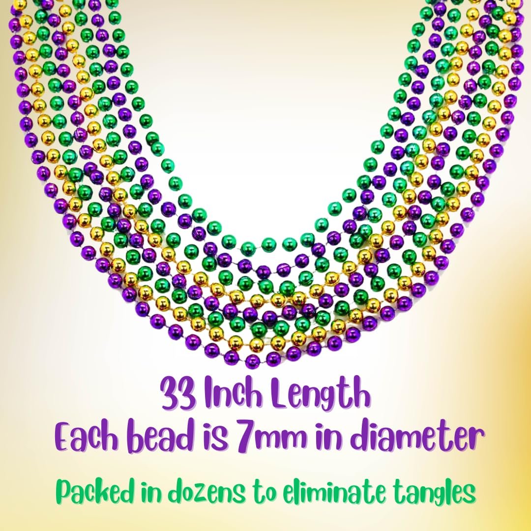 Mardi Gras Beads 33 inch 7mm, 12 Dozen, 144 Necklaces with Doubloon- Bulk Party Favors