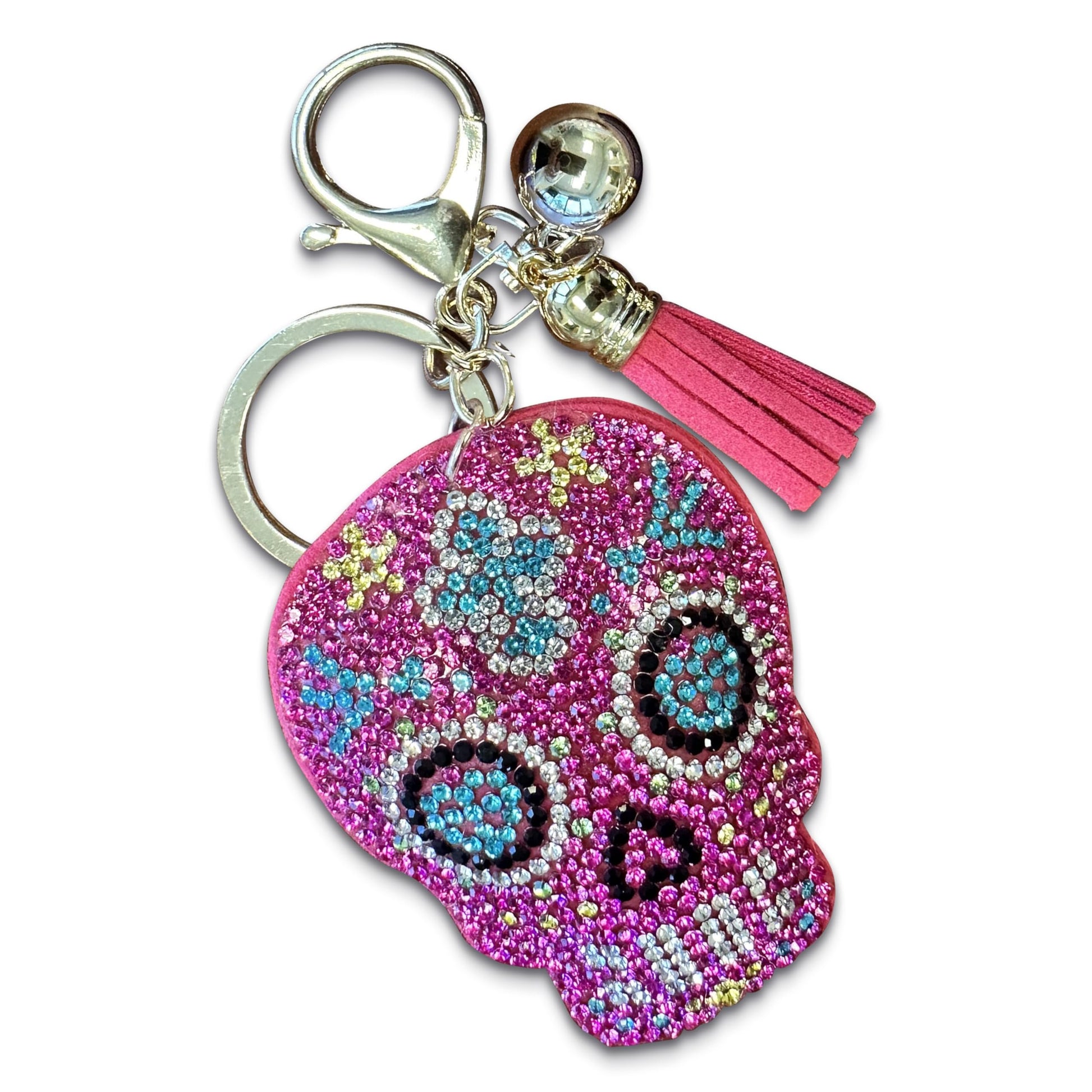 - Easy to Attach - With a sturdy clip, this rhinestone sugar skull charm can be easily attached to any bag, purse, or keyring, making it a convenient and fashionable addition to your daily essentials. The pink tassel adds an extra flair that is both playful and chic.