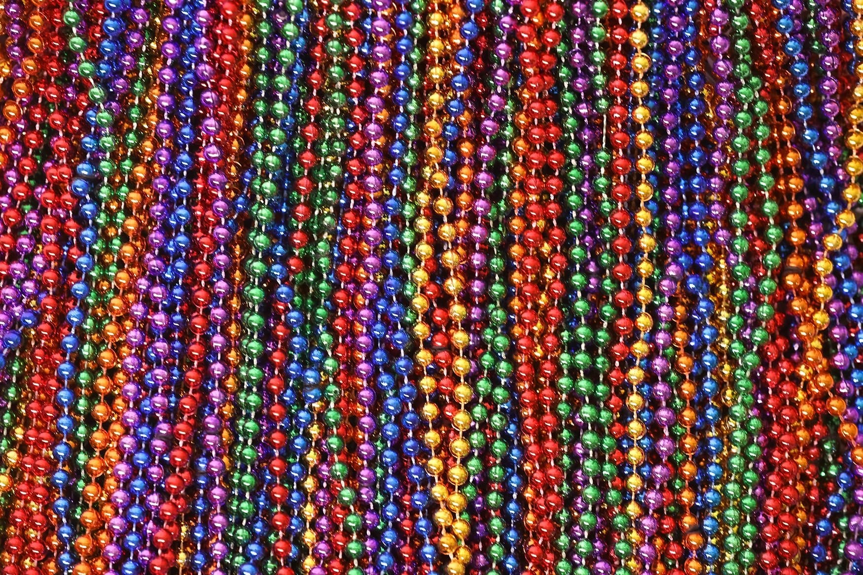 Be festive in these Mardi Gras Beads at your next parade, costume party, trade show or event!
