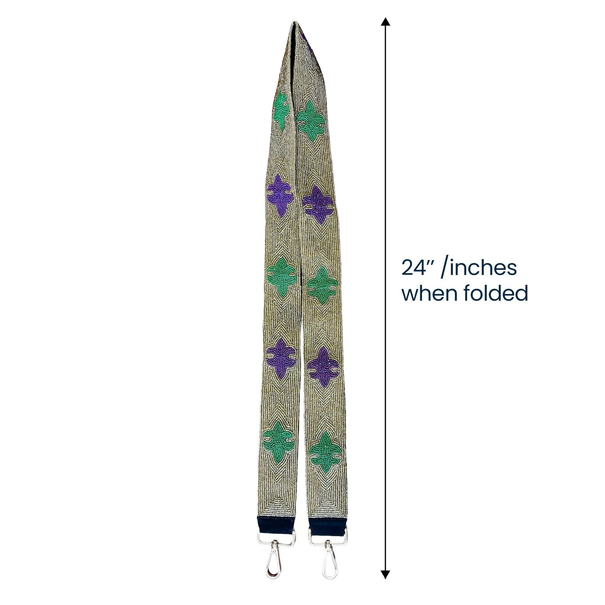 - COMFORTABLE AND ADJUSTABLE FIT - Measuring 24 inches when folded, this shoulder strap ensures a comfortable fit for crossbody or over-the-shoulder use. Perfectly adjustable for convenience, the strap's width evenly distributes weight, so you can carry your essentials with ease during Mardi Gras festivities. The Fleur-de-lis detail adds a sophisticated touch to its functional design.
