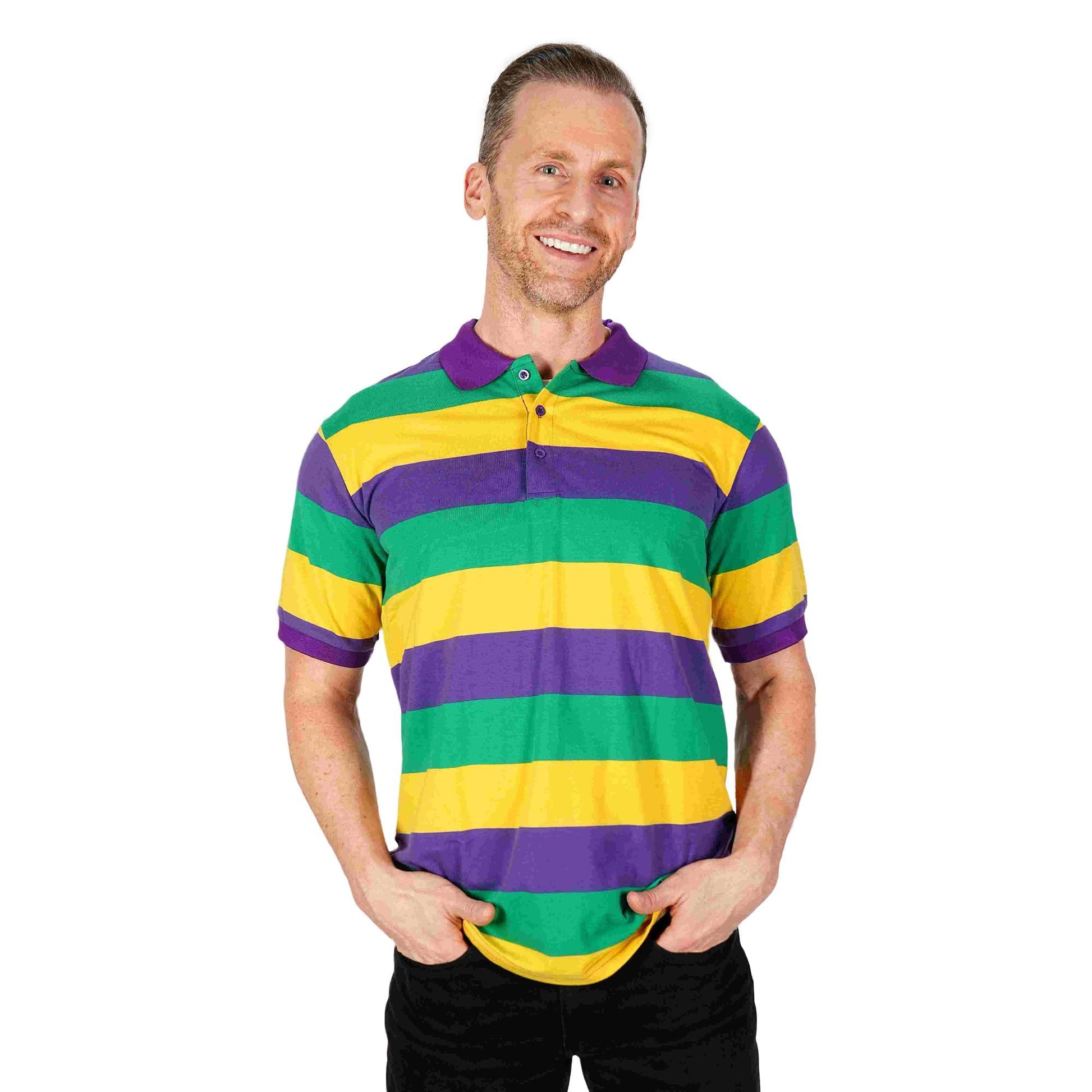 - CELEBRATE MARDI GRAS IN STYLE - Step into the festive spirit with our Mardi Gras polo shirt! Designed in the iconic purple, green, and gold stripes, this polo t-shirt for men embodies the colors of Mardi Gras traditions. Whether you’re attending a parade, a party, or simply showcasing your festive flair with Mardi Gras decorations, this vibrant polo ensures you stand out in the crowd. Perfect as a Mardi Gras outfit for men, it’s a staple for anyone looking to embrace the festivities.